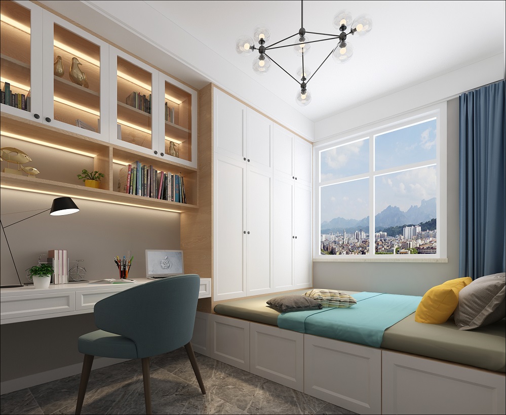 国内的榻榻米,基本都是在窗边沿着开间方向铺设地柜,在其上面布置床品。开间尺度足够的话,在地柜靠两侧墙体位置可以打柜子,既能满足睡眠功能,还可以制造更充足丰富的收纳空间。高低床就是高低落差的床,也就是所谓的上下床,上面的床位满足睡眠功能,下方也可以满足睡眠功能,或者做书桌,做收纳等等,儿童房所用的高低床,其外观造型,所包含的功能,以及在安全的保护上也做很好。